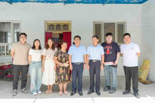 校领导一行先后驱车一百多公里来到22级麻豆a片 麦冉萨古·伍斯曼江和22级财税与公共管理学院热伊木·玉素甫江家中进行走访慰问,并送去慰问金。