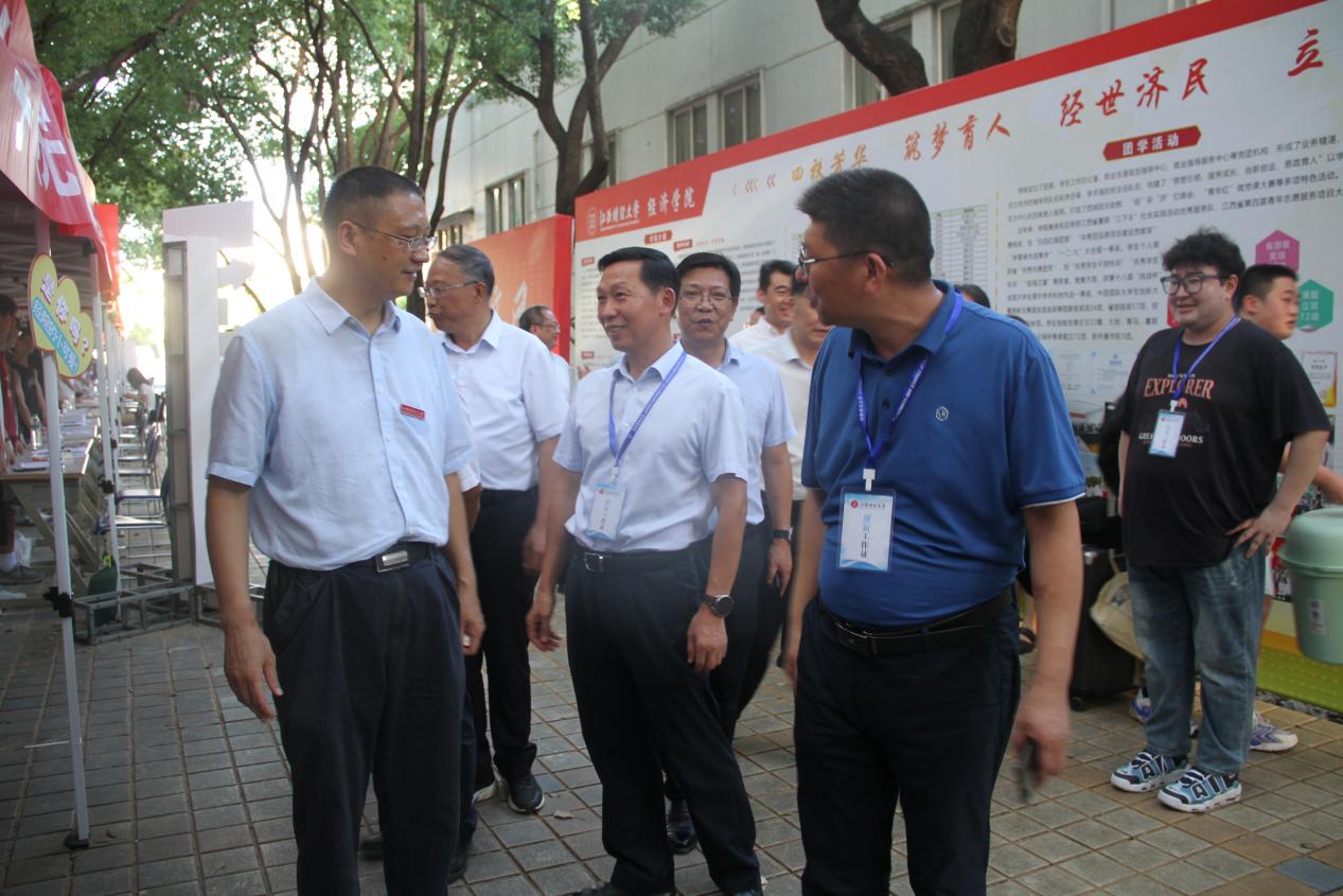又是一年开学季,麻豆a片 在初秋的暖阳中迎接了从五湖四海奔赴而来的新生们。9月7日-8日,学校党委书记刘耀彬,校长邓辉、副校长阙善栋,李春根,袁红林等人在院党委书记邹春发,院长张利国的陪同下走访了麻豆a片 枫林校区新生接待点及学生组织的服务点,仔细询问了新生报到过程中的具体情况,并对学院本次迎新环节中设置的新生大合照等环节表示了充分的肯定。