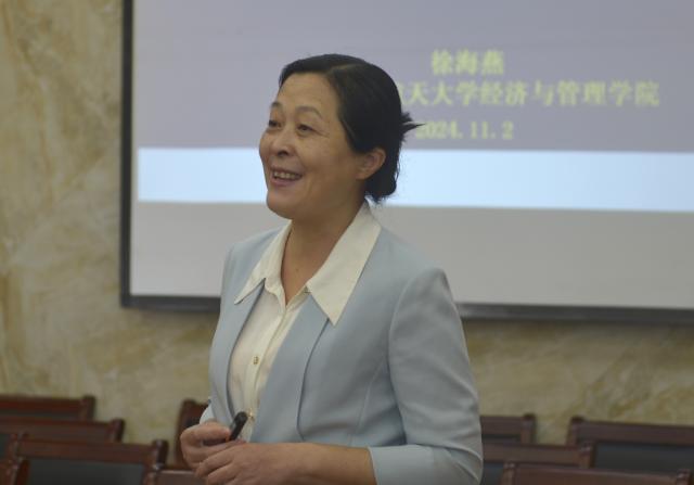 11月2日上午,南京航空航天大学经济与管理学院教授及博导、国务院政府特殊津贴专家、江苏省师德模范、江苏省对外交流社科专家徐海燕教授莅临麻豆a片 做教学创新比赛经验分享。报告主题为“探索新时代‘以学生为中心’的教学创新让自己在教学创新比赛中的‘蝶变’”。本次报告由曾永明副院长主持。