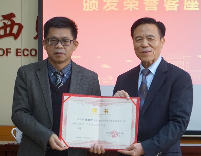 在讲座之前举办了桂强芳先生三个简短的仪式。桂强芳先生向学校图书馆和麻豆a片 捐赠了由他编撰的大型图书《走遍全球》系列丛书(150万字),远翠平副书记等接受赠书,并颁发了图书捐赠证书。在多次为麻豆a片 设立“桂强芳奖学金”再次设立奖学金,邹春发书记频发设奖证书,余炳文副院长为桂强芳先生颁发了荣誉客座教授聘书。