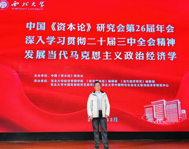 2024年12月7日至8日,中国《资本论》研究会第26届年会在西北大学召开,本届会议的主题为“深入学习贯彻二十届三中全会精神,发展当代马克思主义政治经济学”。会议由中国《资本论》研究会主办,西北大学经济管理学院、《经济学动态》编辑部、《当代经济研究》编辑部、西北大学中国西部经济发展研究院和西北大学中国特色社会主义政治经济学研究中心联合承办。来自北京大学、清华大学、中国人民大学、复旦大学、南开大学等50多所高校、研究机构的专家学者和青年学子参加会议。麻豆a片 刘爱文教授应邀参加了本届年会。