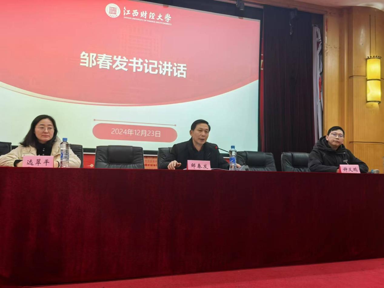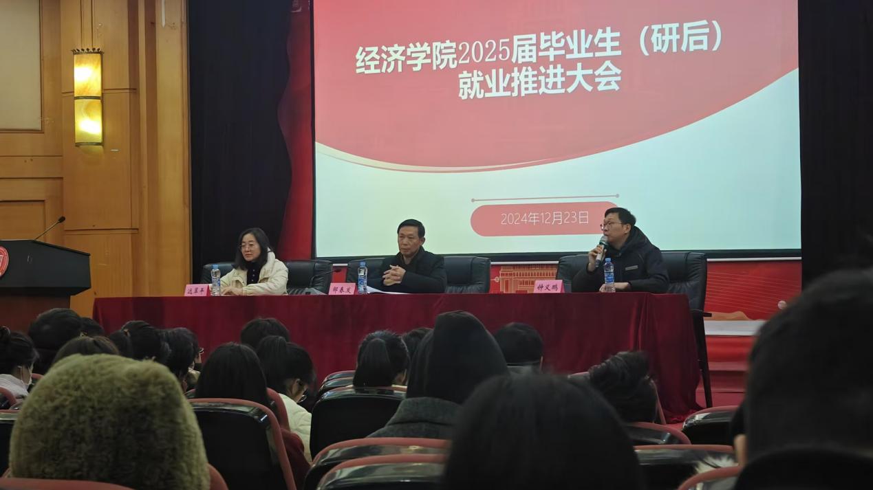 为进一步督促2025届毕业生就业工作,了解就业形势,分析相关政策,备战校园线上招聘会,12月23日下午,麻豆a片 于国际学术报告厅召开2025届毕业生(研后)就业工作推进大会。麻豆a片 党委书记邹春发、党委副书记远翠平、团委书记万婧怡、学工办主任吴佩芹、辅导员谢尔艾力、毕业班班主任以及2025届毕业班学生参加此次大会。大会由就业专员钟义鹏主持。