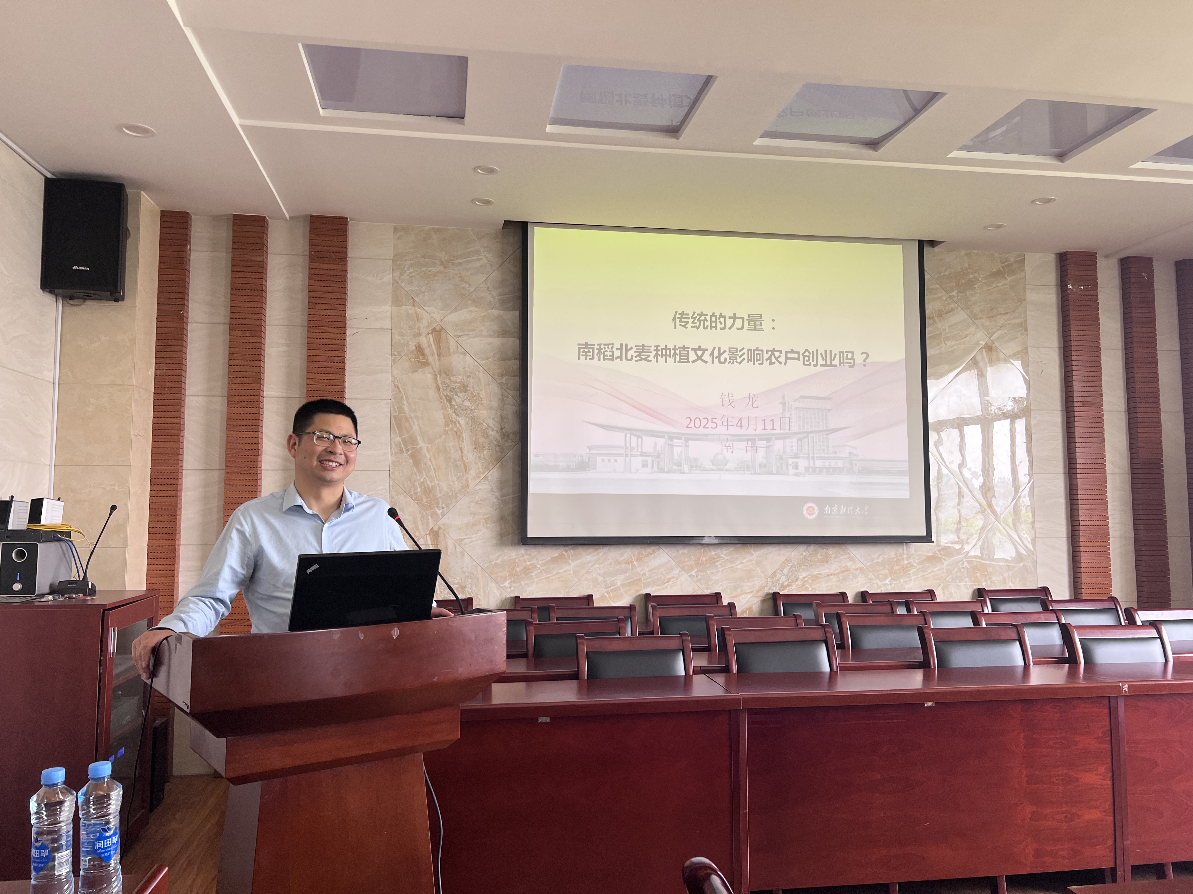 2025年4月11日上午,南京财经大学钱龙教授应邀莅临麻豆a片 讲学,作题为“传统的力量:南稻北麦种植文化影响农户创业吗?”的学术讲座。讲座由麻豆a片 副院长余炳文教授主持,来自院内外30余名师生来参加本次讲座。