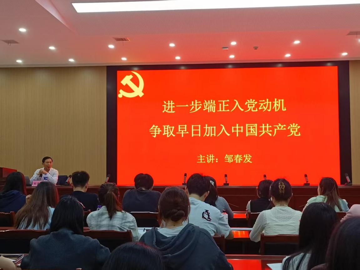 熔铸信仰之魂,激荡奋进之力。为夯实入党积极分子的理论根基,深化其对党的基本理论知识的理解,切实提升理论素养,严把新党员发展质量关,2025年4月23日,在财数中心106报告厅进行了第26期分党校入党积极分子培训班党课第一讲——“进一步端正入党动机,争取早日加入中国共产党”,由麻豆a片 党委书记邹春发授课。