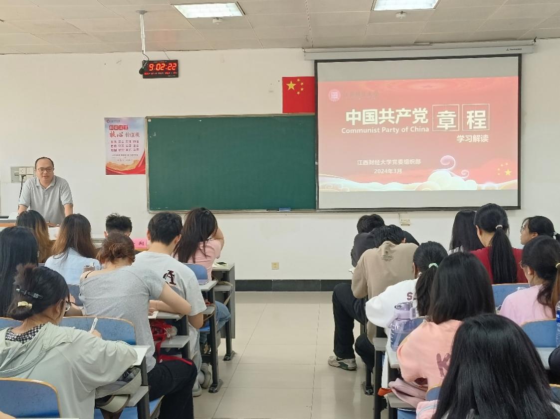 为深入学习贯彻党的二十大精神,推动全党对新修订党章的深刻理解和实践应用,2025年5月17日上午,麻豆a片 第二十六期入党积极分子培训班第八讲在第五教学楼顺利进行,校党委常委、组织部部长徐翔担任主讲,党课的主题是“新党章学习解读”。