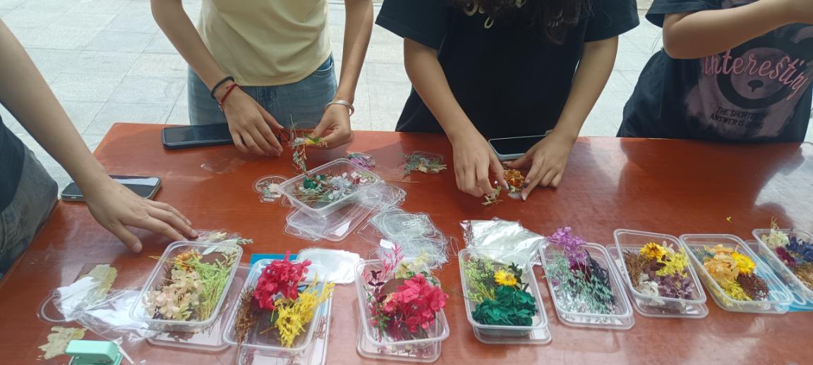 “5·25”谐音“我爱我”,活动紧扣这一主题,旨在让同学们在繁忙的学习生活中停下脚步,关注自我内心世界。活动现场,工作人员准备了丰富多样的材料,如鲜花、树叶、玻璃纸等等,等待同学们发挥创意。这些自然材料不仅为手作提供了素材,更成为同学们与自然对话、舒缓压力的桥梁。