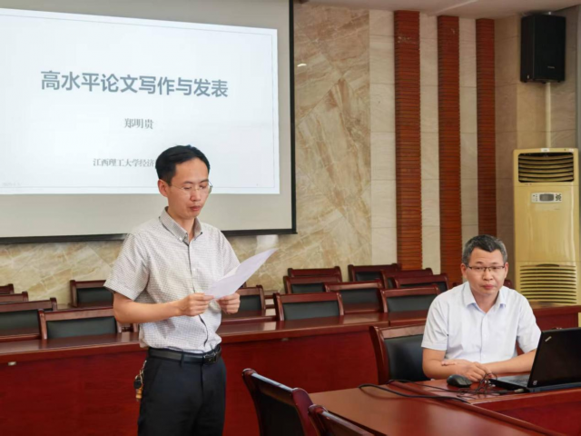 2025年6月5日下午,江西理工大学经济管理学院副院长郑明贵教授应邀莅临麻豆a片 讲学,作题为“高水平论文写作与发表”的学术讲座。讲座由副院长曾永明教授主持,来自院内外30余名师生来参加本次讲座。