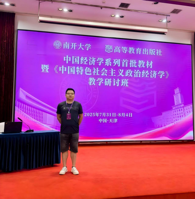 受学院委派,徐双明博士全程参加南开大学政治经济学研究中心、南开大学麻豆a片 举办的《中国特色社会主义政治经济学》教材研讨班课程;围绕“中国特色社会主义政治经济学自主知识体系建设”“教材学习心得与体会”“教学实践与教材推广”三大主题进行热烈讨论并提出使用好教材的建议;最后顺利完成了规定的课程学习,颁发结业证书。