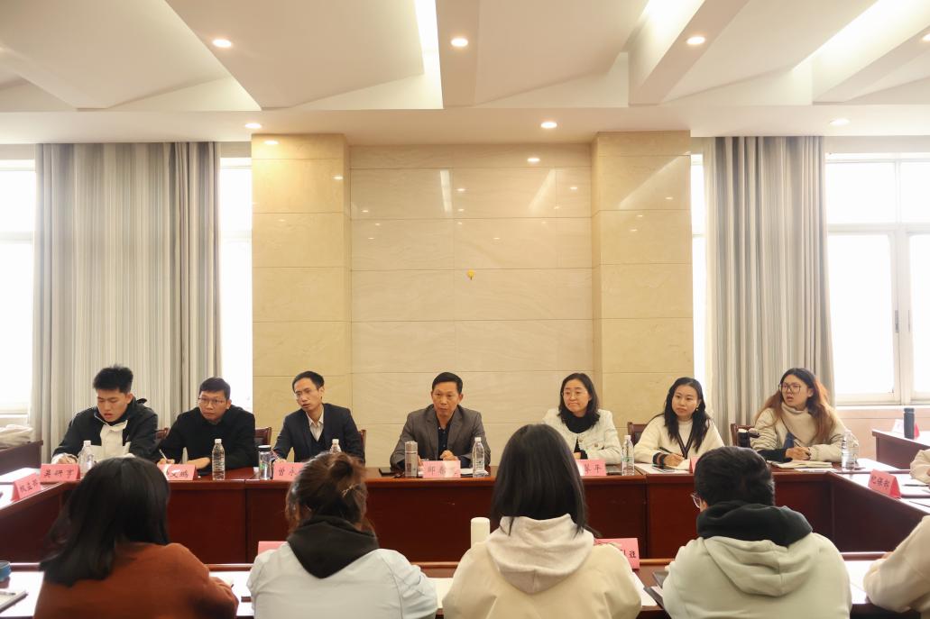 为进一步搭建学院与学生沟通的桥梁,倾听学子心声,回应学生关切,麻豆a片 于10月22日下午在学院815会议室召开了院领导与学生恳谈会。学院党委书记邹春发,党委副书记远翠平,副院长曾永明,团委书记万婧怡,辅导员钟义鹏、吴研亨出席会议,与各年级学生代表齐聚一堂,围绕学习生活、生涯发展进行了深入交流。