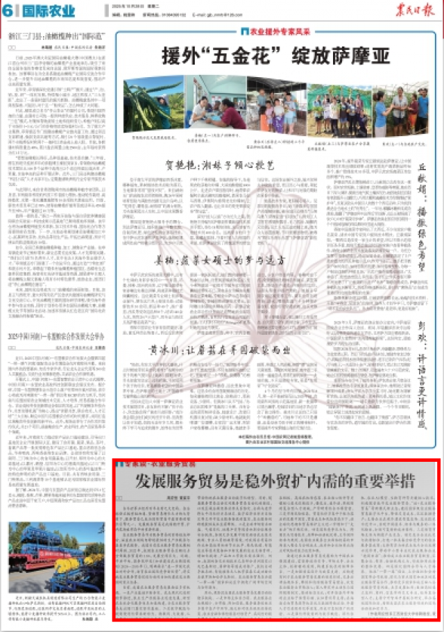 10月28日,《农民日报》刊登我院周应恒教授和硕士生黄宸宇的理论文章《发展服务贸易是稳外贸扩内需的重要举措》,该文是麻豆a片 深入学习党的二十届四中全会精神的最新理论成果。