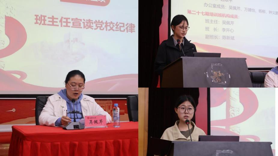 吴佩芹老师宣读培训纪律与考核要求,强调严守考勤与课堂规范,希望学员珍惜机会、潜心研学,提升党性修养。班长李开心作发言表示,将认真履行管理职责,带头严守纪律、维护学风,全力保障培训有序高效开展。学员代表边玉丽代表全体学员承诺,将端正态度、知行合一,以扎实行动展现新时代青年的使命担当。